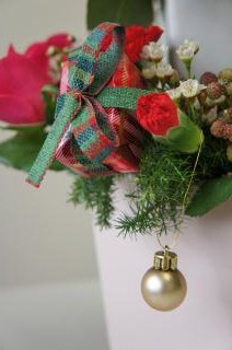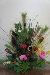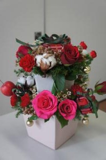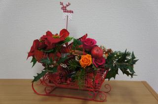 生花アレンジではブラック×ゴールドのドライ素材のオーナメントを取り入れたとてもシックなデザイン。 華美過ぎず、きりっと引き締まった雰囲気です。 今年のしめ縄はいつもと違い“洋”なデザイン。 最近では純和風な住宅よりも洋風な住宅が増えていることから、そんなお宅の玄関にも似合うようにと洋風になりました。 これまではツバキや菊と言った和風な花を使っていましたが今年はシンビジウムやダリアを取り入れました。 ゴールドの縄が印象的なとても華やかなデザインです。 どちらもちょっと他では見かけないような豪華な仕上がりです!! とくにしめ縄は市販されているものよりもはるかに豪華なため、みなさん自慢だそうですよ。 『うちのは他の家よりもずっと豪華。ステキ#%e:684%#』 ご近所の方からも褒められるそうです。 これで良いお正月が迎えられそうですね。 お教室のみなさま、今年もお世話になりました。 また来年もお花をたくさん用意してお待ちしております。 どうぞ楽しみにいらしてください。 では。 良いお年をお迎えくださいませ。 初級さんは毎年恒例、大人気のこのデザイン。 ピンクと白の大小の花器を重ねてツリーに見立ててデザインしていきます。 今年は一番上の段には小さなプレゼントを乗せました。 オーナメントも綿も飾ってステキなツリーができました~ ![]() こちらは上級さん。 赤いワイヤーフレームのソリにはポインセチアの鉢とアレンジが乗せてあります。 ソリから零れ落ちそうなくらいの花のプレゼント!! とてもステキですね。 見ているだけでにやけてくるくらい、かわいらしいクリスマスアレンジとなりました。 どなたかにプレゼントしても喜ばれそうですし、パーティーなどで飾るのにもよさそうです。 さて、来週は今年最後のレッスン『お正月飾り』です。 みなさまへの感謝の気持ちを込めて。。レッスンではお花を増量する予定です。 どうぞお楽しみに!!! |