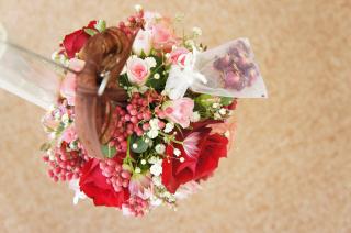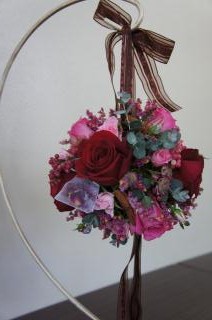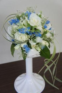 何度も言いますけど、ブーケって本当に見ているだけで幸せな気分になれます。 私と同じ気持ちの方がどうやらほかにもいらっしゃるようでブーケは人気のカリキュラムです。 今日は双葉教室のレッスン風景も撮らせてもらいました。 ここのみなさんはとても仲が良くて、いつも楽しいおしゃべりとともにレッスンを行っています。 (ネコの話が多いのは気のせい??笑) 上級さんの『キャンディボールブーケ』です。 これ、ちょっとすごいんです ![]() なんと2ウェイ ![]() 何で2ウェイかというと。。。“生花”と”ドライフラワー”のブーケだからです。 今は生花のブーケとして楽しみます。 そのうち萎れますがそのままにしておけば、きれいなドライフラワーのブーケになるんです ![]() ドライフラワーとしても十分にキレイな花材ばかりを使っているのでそのような楽しみ方もできるのですよ。 参加したUさんは言っていました。 『ドライになる過程も楽しみ ![]() そうですよね~。 普段はしおれていくのがとてもさみしいのにこれはそれを楽しむことができる、とてもステキじゃないですか? 花材にはポプリも入っているので香りも楽しめますから、3ウェイかも ![]() ![]() これはいつの時代もとても人気のあるデザインですね。 花の色を変えたり、種類を変えると雰囲気がガラッと変わるしどんなドレスにも似合うので人気なのでしょうね。 今回は白を基調とした清楚な花材でした。 ブーケは花器にアレンジをするよりも正直花の持ちが悪いです。 フローラルフォーム部分が小さいこともありますし、染み出た水がたまる場所もありません。 そのぶん普段よりもこまめな水やりが必要です ![]() また、花の表面に霧吹きで水をかけてあげることも効果的なのでぜひやってみてください。 せっかくこんなにきれいに作ったのですから1日でも長く楽しんでもらいたいです ![]()