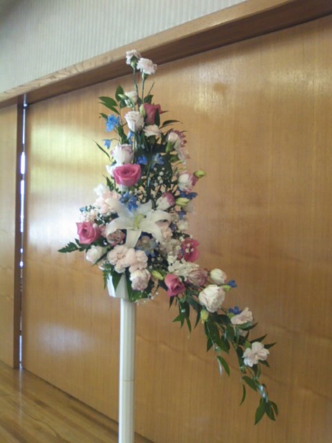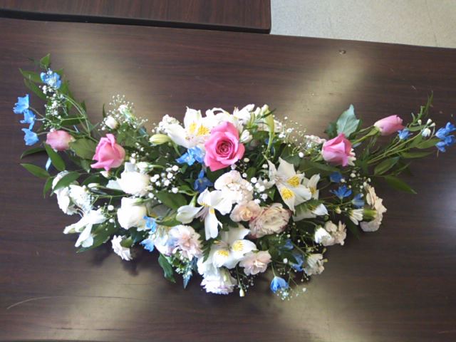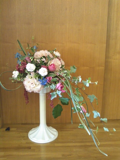 トルコギキョウのある真ん中部分から花があふれ出て行くような躍動感のある作品になりました。