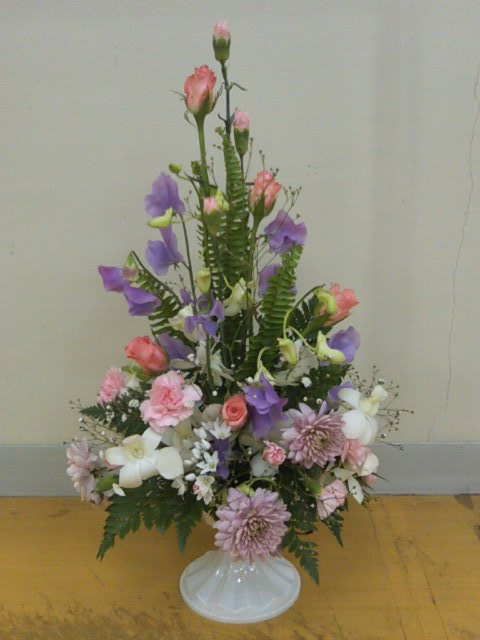 華やかなデザイン。花材も少々お高めなものが多く、種類も豊富でした。