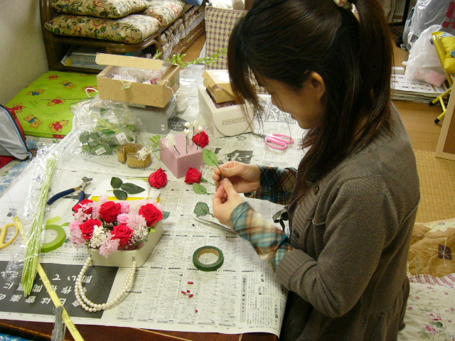 プリザーブドを扱うのは初めてということでしたがとてもステキな作品に仕上がりましたね。良かったです。