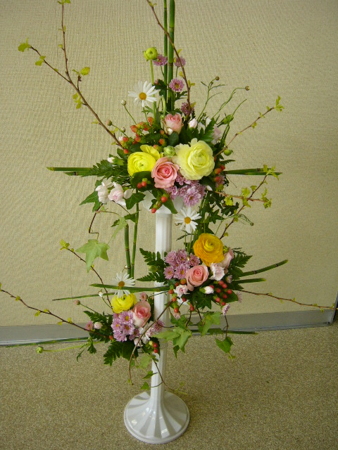 下半分はグリーン(葉っぱ)を多く使って、先端は自然に細くなる感じに作ってあるんですよ!