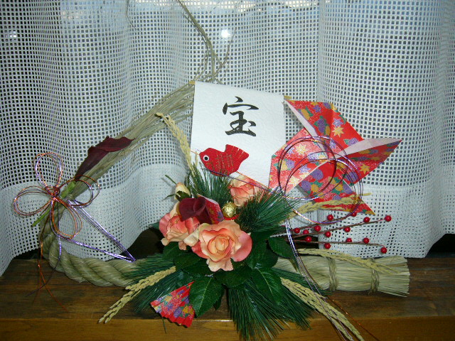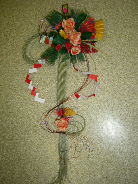 コレを作ったKさんは水引きを工夫して形作ってアレンジに取り入れていました。