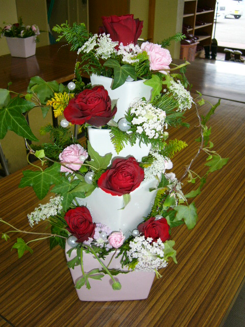 1ヶ月くらいは持つようにと造花を使いましたが生花と間違えるほどでしたよ。