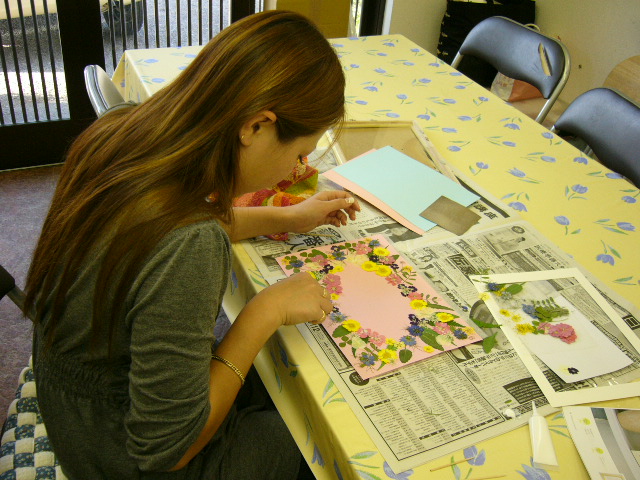 と言ってももうすでに押し花に加工してあるものを使ってデザインし、台紙に張っていくだけです。