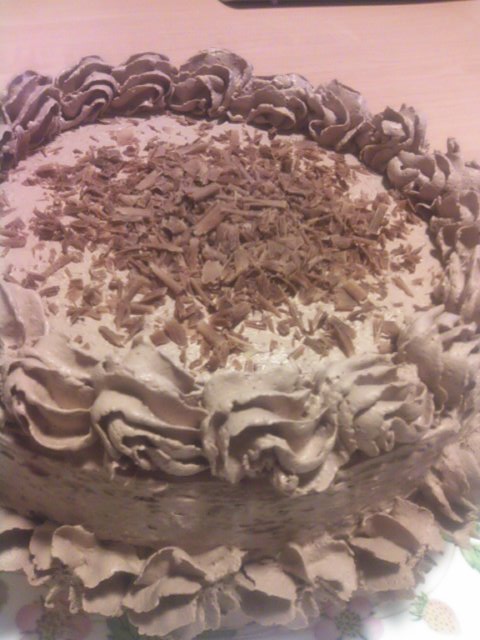 スポンジもクリームもチョコレート味でスポンジの間にはバナナとクルミを挟みました。