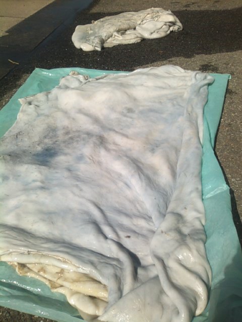 このあとさらに脱脂やタンパク除去をして、それからいよいよなめし作業へと入っていきます。