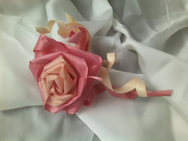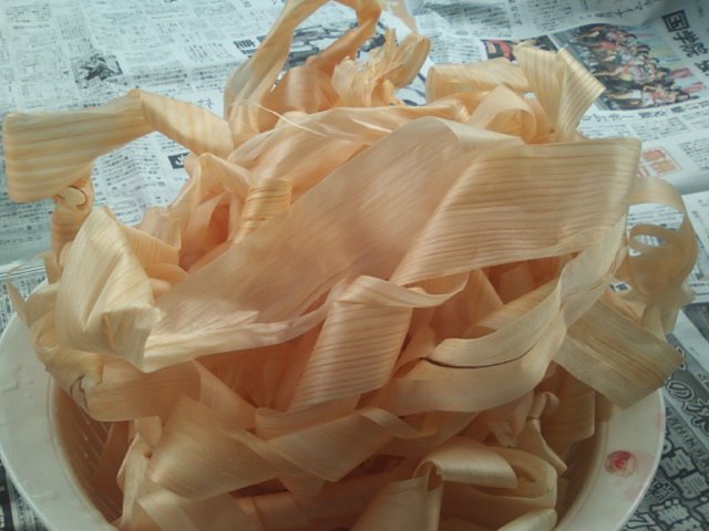 ヒノキをうすーく削ったものを花の形に加工したものです。