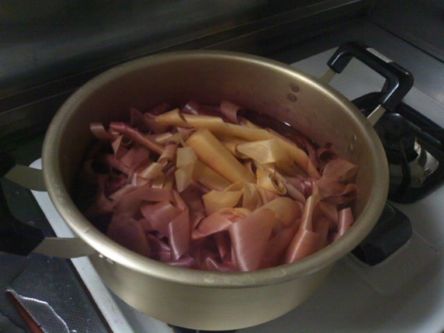 “木の香”材料のヒノキテープで染色したものがなくなったので染めました。