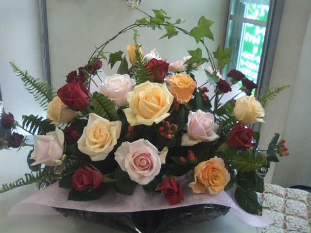 前回の玉穂では花材すべてを使ってビッグアレンジにしたり、2アレンジしたりという方が多かったのですが、今回は通常花材とプレゼントバラを分けてアレンジする方が多かったです。
