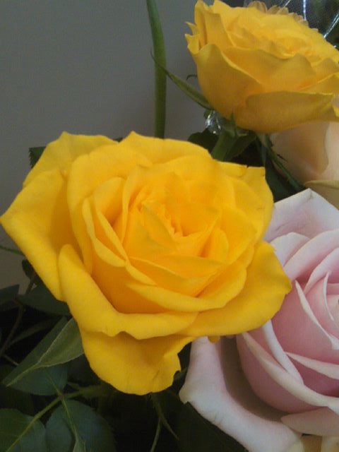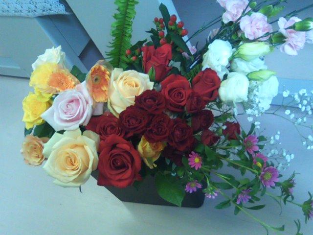 ♪♪♪花のほかにはラッピングペーパーが3枚とピンクのきれいなリボンが1本。