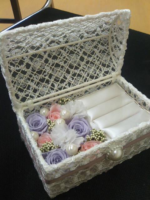 F田さんはこのボックスアレンジを知り合いの結婚のお祝いとしてプレゼントするのだそうです。