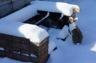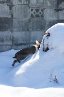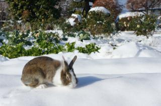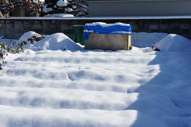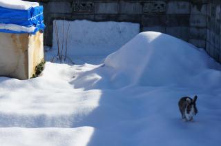 甲府周辺では午後から雪が降り始めました。 雪は深夜まで降り続き、朝には5センチ以上も積もっていました!! 12月に何回も降ることはなかったんじゃないかな。 やっぱり今年は寒い。 庭はこの通り。 真っ白でした。 ・・・・・・・・・・・あらっ??? よーく見ると何かが庭にいますねぇ。 1枚めの写真だと右にいる夫が見つめる先に、2枚めの写真だと右側に。 そうです。 ウールだぁっ!! 実はこの日、初めてウールを家の外に出してあそばせたのです。 初めての外あそび、初めての雪に最初は警戒していたウールですが5分ほどですぐに慣れたようです。 あちこちに様子を見に行っては臭いを嗅いだりあごをこすったり。 雪をホリホリしたり、庭の端から端までダーーーッと思いっきり走ったり。。。。。 外も雪もとても楽しかったみたいです。 終いには中に入れるのを嫌がるほどで、夫婦二人でちょっと苦労しました。 こんなに楽しんでくれるのなら、また出してあげようかな? ところで。 ウサギを外にあそびに連れて行くことをウサギ親用語でなんて言うか知っていますか? 私もウールを飼い始めてから知ってちょっと笑ったのですけどね。 『うさんぽ』 っていうのですってよ!! なんか笑っちゃいますよね~。 あと、ケージなどから出し部屋の中で遊ぶことを、 『へやんぽ』 って言うらしいです。 ネコや犬も同じなのかな? いずれにしても親ばか用語ですよねぇ。 PR